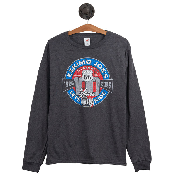 Celebrating its 100th anniversary in 2026, Route 66 remains the ultimate symbol of the great American road trip. This iconic 2,448-mile highway was officially designated on November 11, 1926, and originally stretched all the way from the skyline of Chicago to the shores of Santa Monica. To commemorate this centennial milestone, we’ve put together a special collection of tees and trinkets featuring Joe and Buffy cruising along the "Mother Road." Grab a piece of history from our collection and join us in celebrating a century of adventure on America's most famous highway!